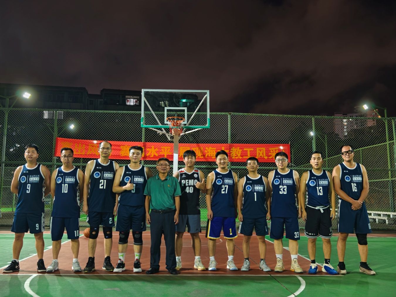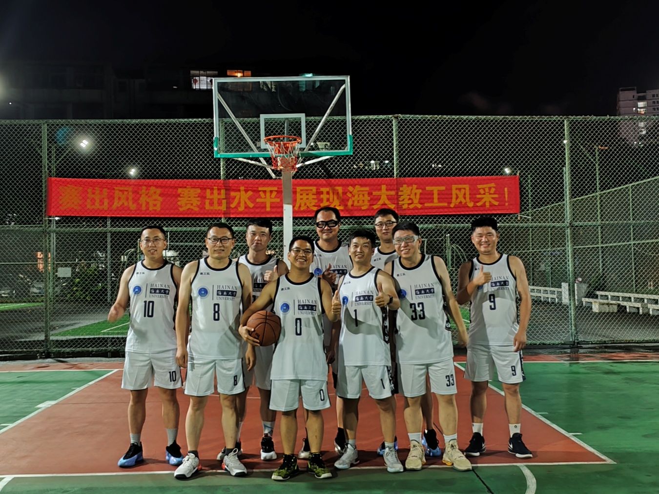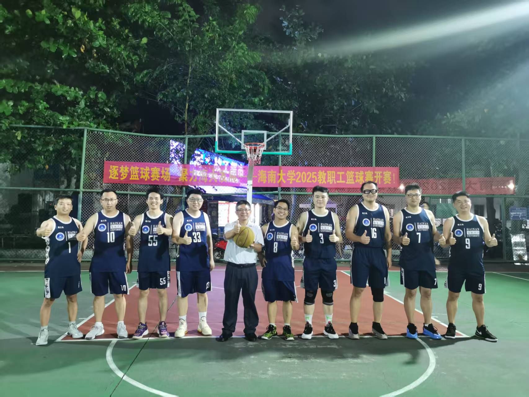 学院教职工男子篮球队自前年组建以来,始终受到学院领导的高度重视与大力支持。在学院的积极组织和保障下,全体队员(包括多位专任教师和行政老师)利用课余和休息时间,坚持进行系统性训练。两年来,无论寒暑,训练场上总能看到队员们挥洒汗水、切磋技艺的身影,团队默契与战术水平得到显著提升。