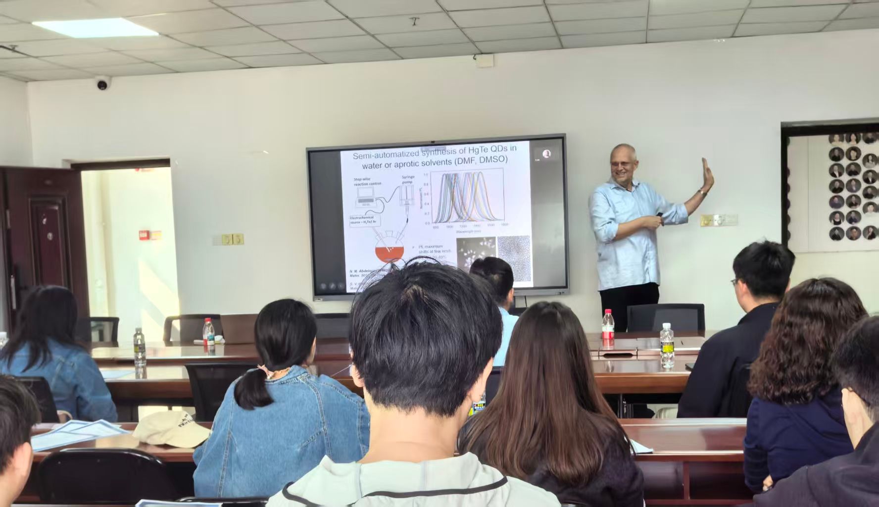 Rogach教授是胶体纳米材料领域的国际知名学者,长期致力于发光纳米材料的合成、光谱学与光电子应用研究,已发表学术论文500余篇,总引用超过6万次,连续多年入选“全球高被引科学家”。报告中,Rogach教授系统介绍了其团队在铜铟硫族、HgTe及钙钛矿纳米晶材料方面的最新进展,阐述了通过尺寸与表面调控实现可见至红外波段高性能发光的机制,并展望了该类材料在新型发光器件、红外探测及光催化还原等领域的应用前景。