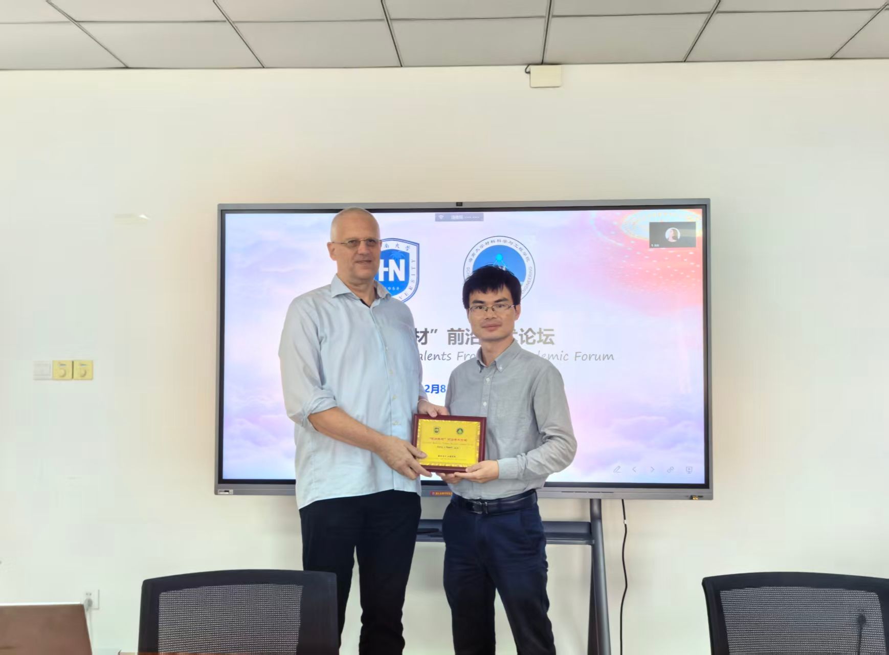 12月8日,千度直播 第十七期“琼州英材”前沿学术论坛在研发楼210举行,本次论坛邀请欧洲科学院院士、香港城市大学光子学材料讲席教授Andrey L. Rogach作学术报告,邵世洋副院长主持论坛。