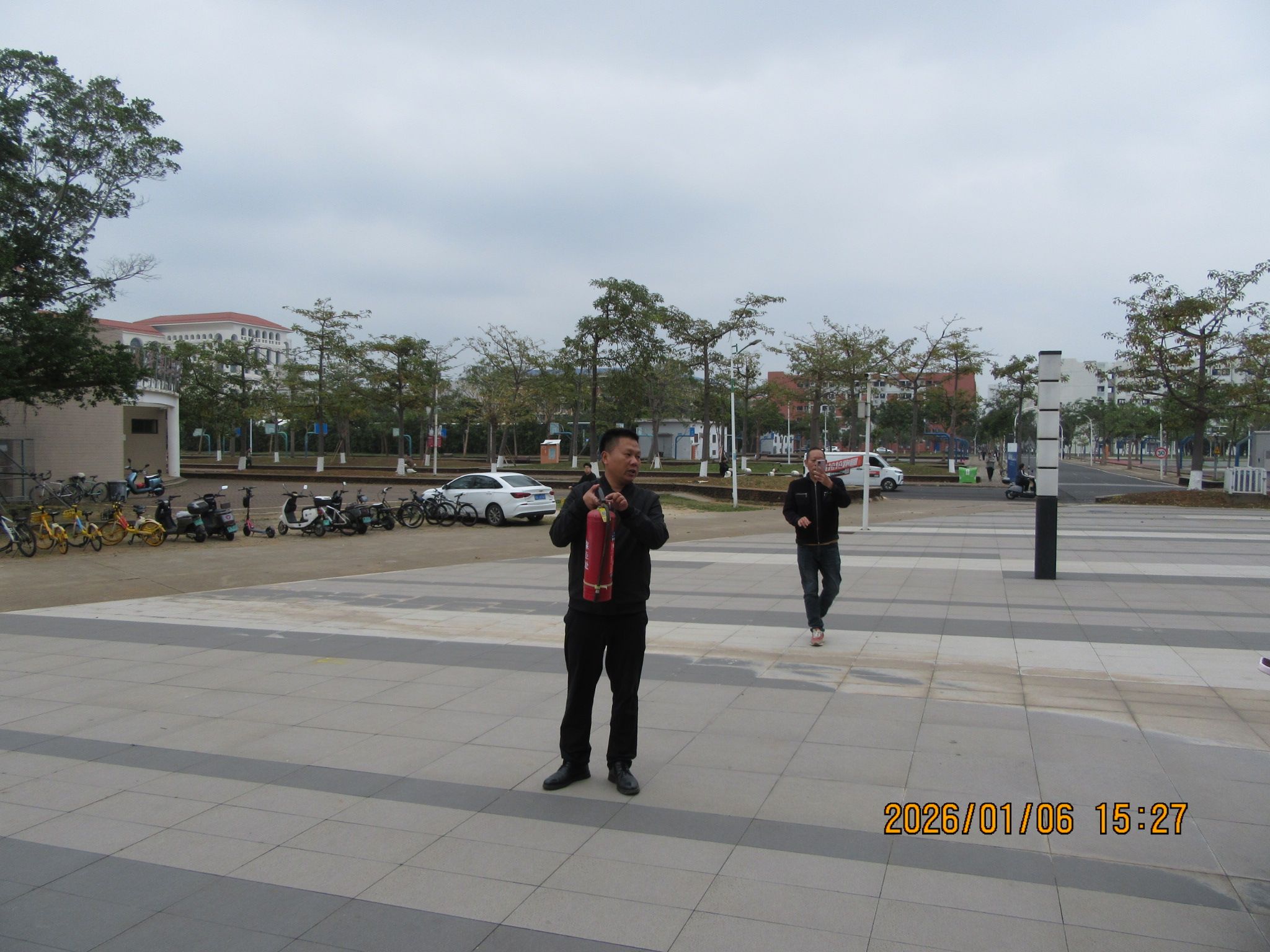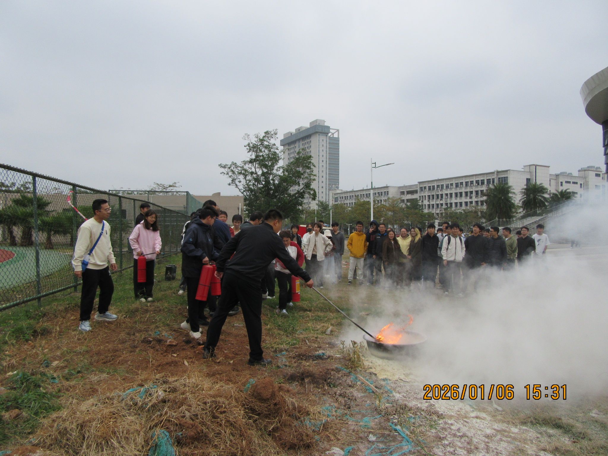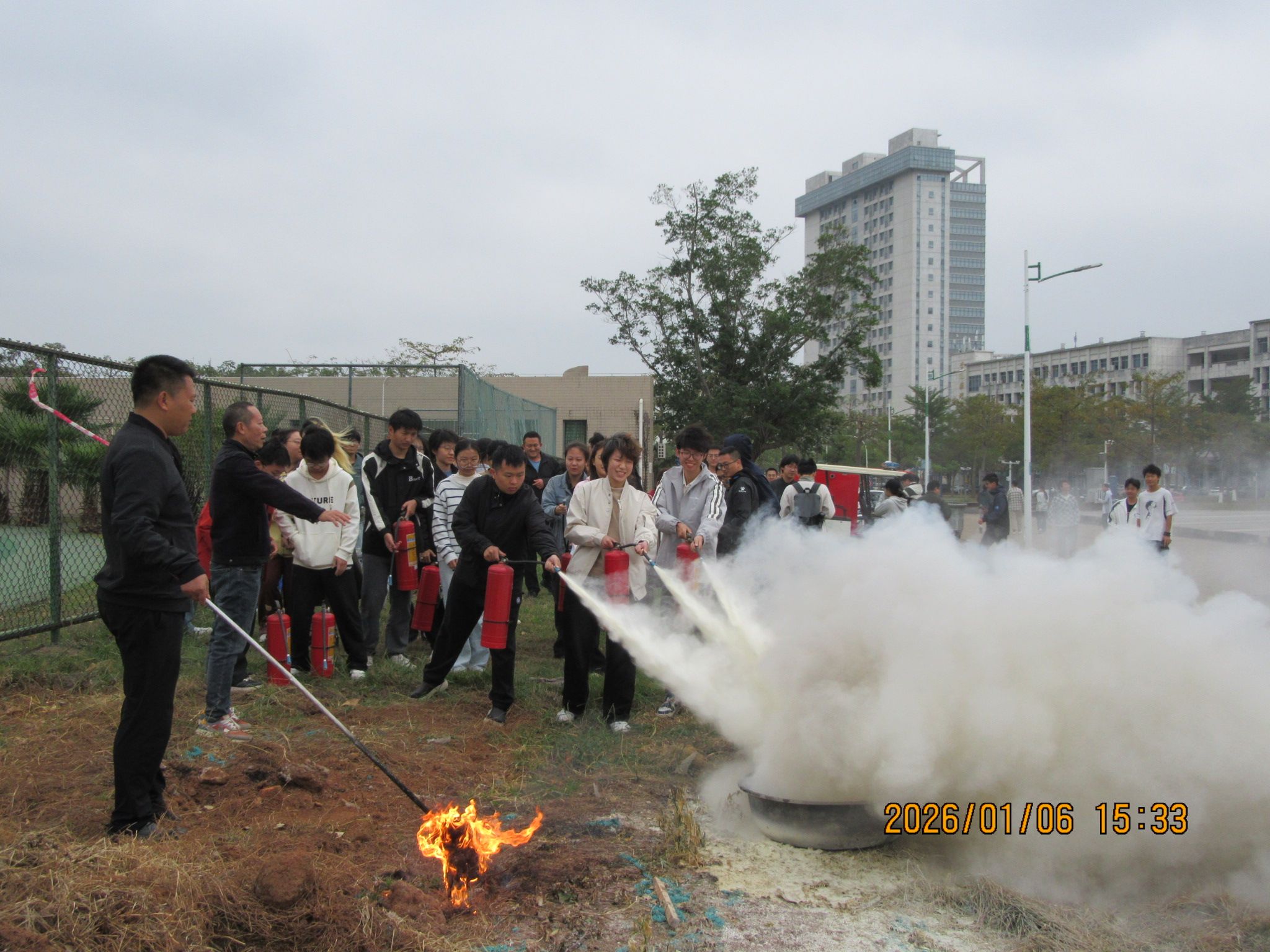 为深入贯彻落实千度直播 消防安全管理规定及学校关于开展消防安全培训的通知精神,进一步加强和规范学院消防安全管理,夯实师生消防知识根基,锻造消防安全核心能力,切实预防火灾事故、减少火灾危害,保障全院师生员工生命财产与学校财产安全,2026年1月6日下午,千度直播 于第二田径场与体育学院之间的道路区域,组织开展消防安全专题培训及实战演练活动。学院党委书记胡先文、分管副院长李长久全程观摩学习,李长久副院长作了动员讲话,学院教职工代表、实验室管理员及学生代表参加了此次活动。
