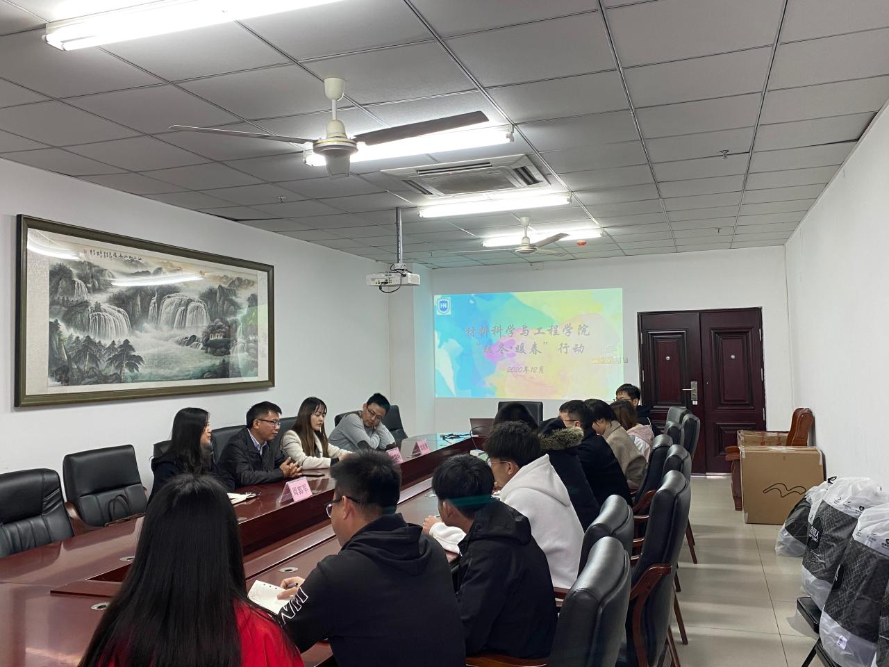12月17日中午,千度直播 开展2020年“暖冬·暖春”行动,学院党委副书记胡先文及全体辅导员、学生代表参加。