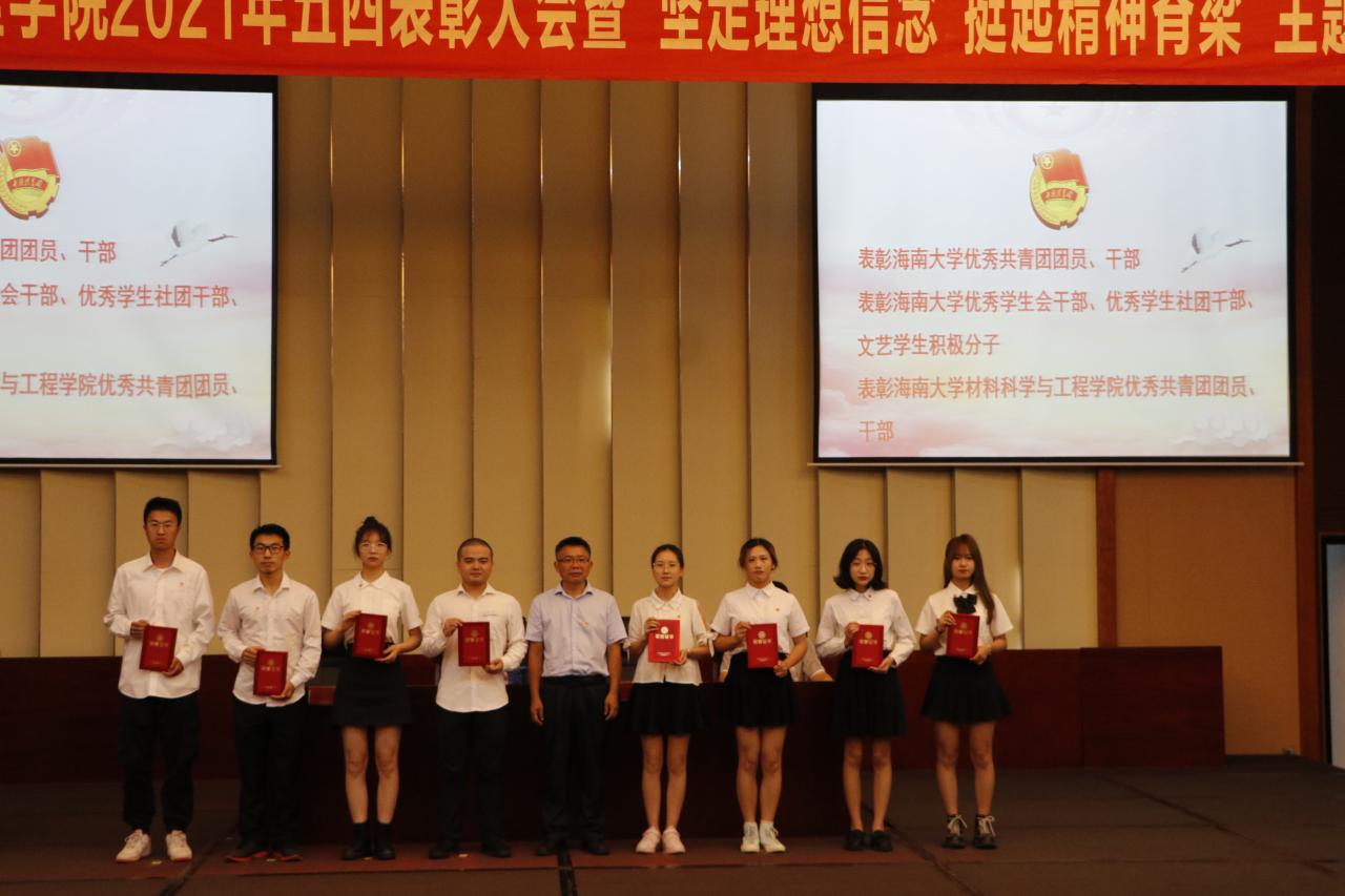 团学骨干代表刘邓,发表高水平文章代表赵石磊,创新创业代表黄吉意和学院2021年大学生年度人物代表顿耀辉上台分享了他们的求学经历与心路历程,展现了材青学子刻苦学习,勇于创新,求实进取的五四精神,为当代青年树立榜样。