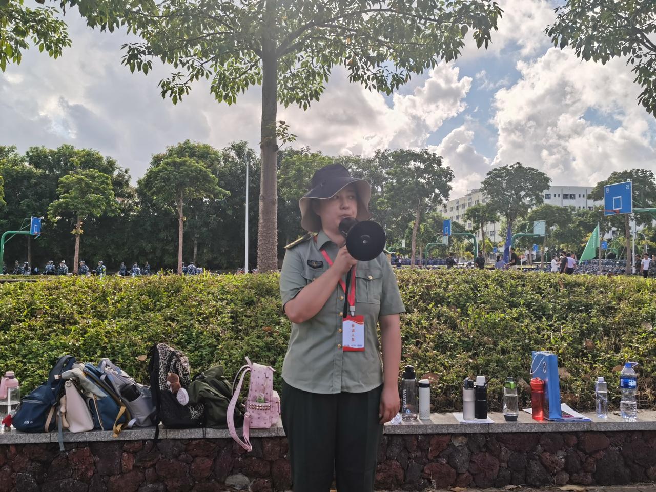 学院学工办负责人、2021级新生辅导员郎筱宇向学院全体受训新生做军训要求说明,明确军训期间的要求,强调军训期间要做到令行禁止,听从教官训练,积极克服困难,有不适及时提,认认真真投入到军训中去。