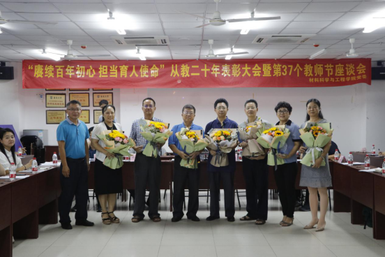 廖建和院长对学院全体教师致以节日的问候,向受到表彰的先进个人表示热烈的祝贺和衷心的感谢。院长从自身从教经历谈起,分享教学方面的实践经验,激励新入职教师要尽快做好角色转变,努力成为先进思想文化的传播者、党执政的坚定支持者,做新时代新材料的引路人,引导学生大胆探索新领域,为学院发展做贡献。