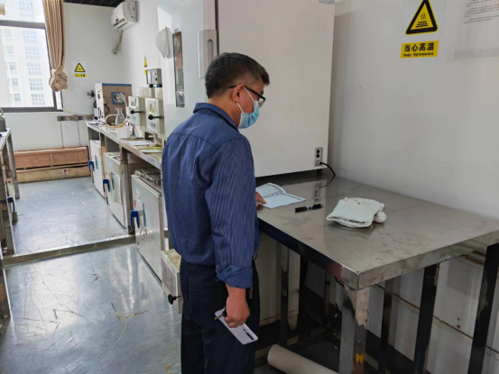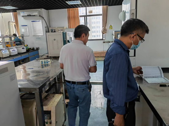 为贯彻落实《教育部办公厅关于组织开展2022年高等学校实验室安全检查工作的通知》(教发厅函[2022]11号)文件要求,切实做好2022年实验室相关准备工作,全力保障校园安全稳定,2022年5月19日上午,学院党委书记胡先文带队开展了实验室安全综合检查工作。本次检查重点为实验室人员出入登记、师生实验过程个人防护、化学品管理、特种设备使用和实验废弃物管理等。