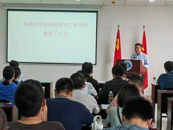 学院书记胡先文对本次会议进行了总结。他要求全院教师贯彻落实学校会议精神,凝聚共识,聚焦学校三大改革,为学院发展献计献策,重点要求:一是全体教职员工要提高政治站位,认真学习、贯彻本次会议精神。要发扬“敢闯敢试、敢为人先”的奋斗精神,落实“崇德明志、求是唯实”材料人的科学精神,自立自强,守正创新,以学院的发展为己任,统一思想,明确目标,心往一处想,劲往一处使,要在强化政治引领中筑牢思想根基。二是党建引领学院高质量发展。各支部要始终把政治建设放在首位,积极通过党建工作引领教育教学工作,推进党建和业务双融合、双促进。学院党委要召开专题会议,认真落实学院高质量发展的各项任务,制订责任清单,明确路线图和时间表。各支部要认真领会本次会议精神,积极参与学院各项改革与发展的工作中来。三是各级教授委员会、各系主动作为学院的发展。要围绕“四金”建设、专业责任教授、服务自贸港建设、成果转化以及“一院一校”等工作开展相应的研究工作,解决影响学院高质量发展的相关瓶劲问题,为学院发展献计献策。四是全员教师要主动参与学院的管理工作。学院坚定不移贯彻落实学校的“三大改革”精神,各教师要主动参与专业论证、学生就业工作,筑牢实验安全管理红线意识,做好实验室管理日志等工作,大胆改革创新,对学院发展难点问题提出新举措,积极搭建科研成果转化平台,参与增加学院职工福祉工作中来。