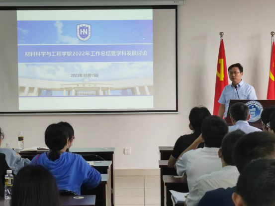邓意达教授对学院近三年工作进行总结,并提出下一步学院高质量发展的工作思路。学院经过三年的努力,2023年3月材料科学学科ESI全球排名前5.3‰,较上次提升6位,材料科学与工程专业获批国家级一流本科专业建设点,学院在学科建设、专业建设等方面取得了较好的成绩,为学院的改革与发展打下坚实基础。2023年学院将创新教学培养管理及学科与队伍建设管理机制与体制,充分发挥教授委员会管理职能作用,落实教学培养及科研平台与队伍建设中的专业认证、课程体系与课程模块建设、工程博士点申报、科研奖励申报、人才项目突破、建立成果转化平台、科研论文增长组织科研平台申报、推动研究团队与研究方向整合和国际化教育与交流科学基金突破等十六项目任务,推动学院高质量发展。