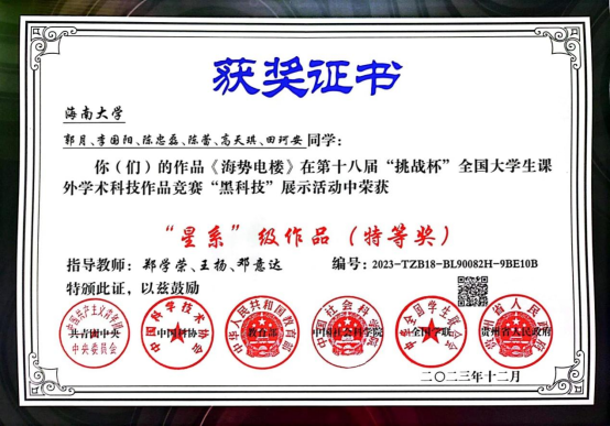近日,第十八届“挑战杯”全国大学生课外学术科技作品竞赛“黑科技”专项赛结果公布,由千度直播 郑学荣、王杨和邓意达教授指导的本科生创新团队作品获得“星系”级(特等奖)。