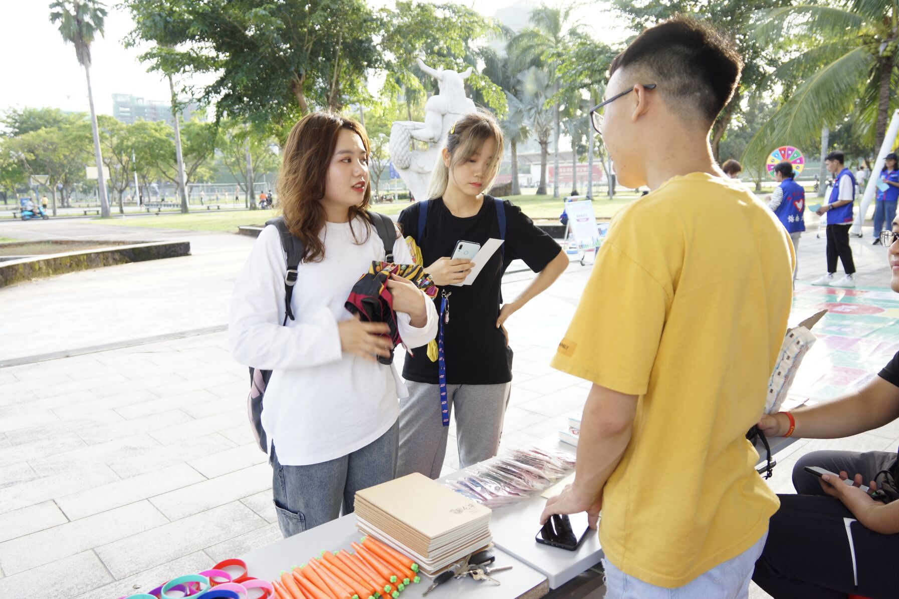 朝气蓬勃的青春在运动场上肆意挥洒汗水,傍晚的城西校区操场上热闹非凡,学生们活力满满,打篮球、跑步、踢足球、跳绳……当志愿者布置好活动现场,立刻引起了同学们的围观。“这是垃圾分类的活动,我家那边特别严格!一会儿我要参加!”来往的学生们充满好奇,共同期待着活动的开始。