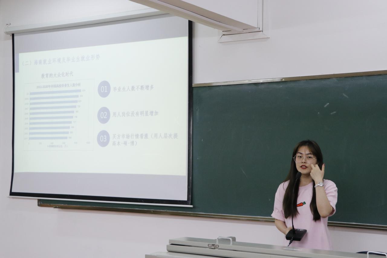 杨馥娴老师做主题为“知己知彼 百战不殆——为什么要做好职业生涯规划”主题分享。她重点分析了全年级2020-2021第一学期的学业总体情况,让全体同学对自身所处位置有了全面了解。她强调,生涯规划是成长的必需品,了解自己、发现自己、规划自己才能让大学生涯更有意义、不留遗憾。她通过举例说明,讲解了如何去思考和进行规划。