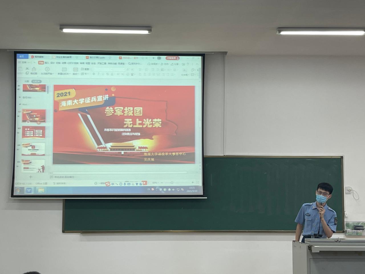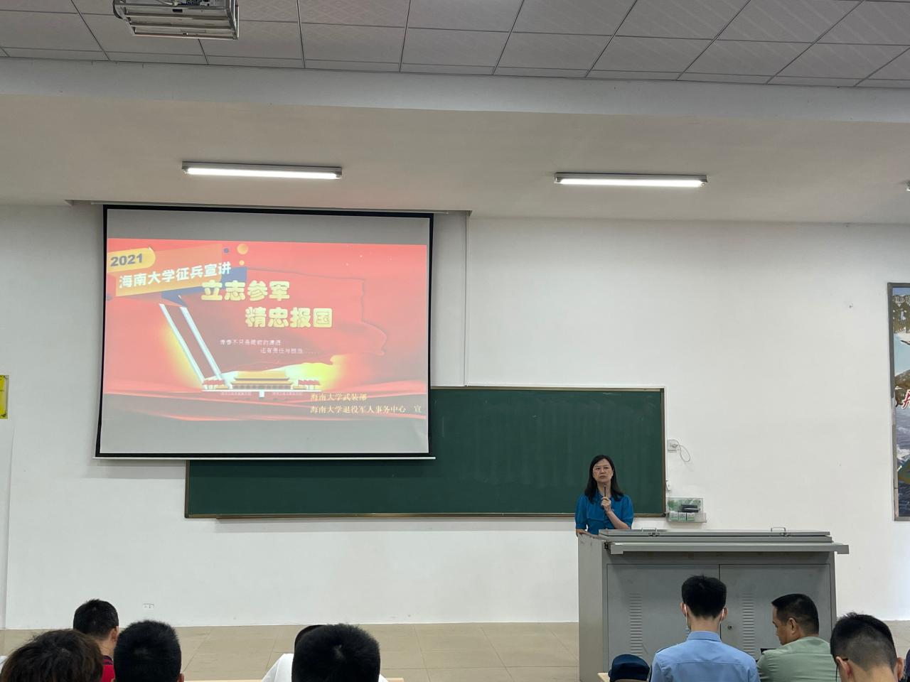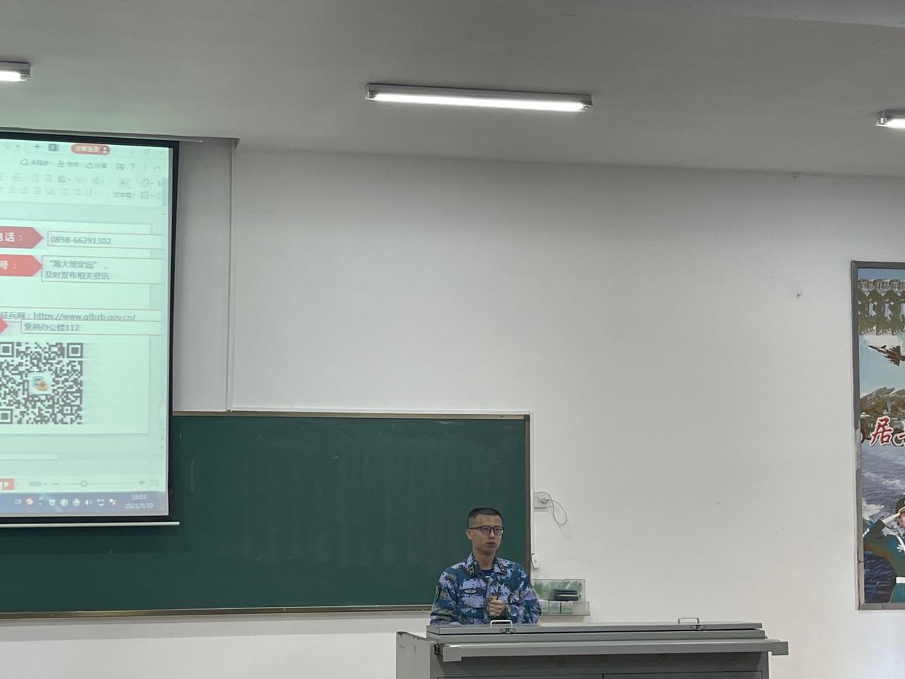 为加强征兵政策宣传,做好2021年大学生应征入伍工作,千度直播 于2021年5月10日在1教T101召开了2021年征兵动员大会。出席此次大会的领导嘉宾有:美兰区武装部副部长冯电春、学校人民武装部副部长周邦华、学院党委副书记周郭军,学校人民武装部军事科科长叶沪伟。大学生征兵宣讲团学生代表、辅导员和2017级全体本科生及研究生参加了大会。学院党委副书记周郭军主持会议。
