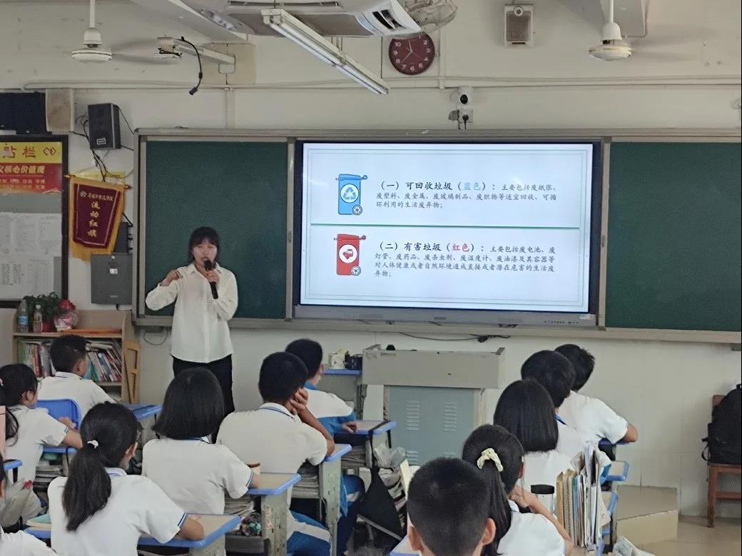 面对前期调研所反应出的情况,实践团决定开展以环保为主的主题宣讲,为此实践团依次到达了事先已经对接的海口市府城中学、三亚市第九小学等约五所小学以及龙华区政府等社区进行了环保主题的宣讲,此宣讲主要分为两大模块,一是“禁塑”,二是“垃圾分类”。通过宣讲过程中同学们以及居民们的反馈,实践团大致了解到目前当地的环保意识已然在不断提升中,“禁塑”和“垃圾分类”已经普遍走进每个人的生活,尽管如此,人们普遍对垃圾分类知识仍存在盲区,但在此次实践团的共同努力下,同学们以及居民们对垃圾分类的认识愈趋全面。