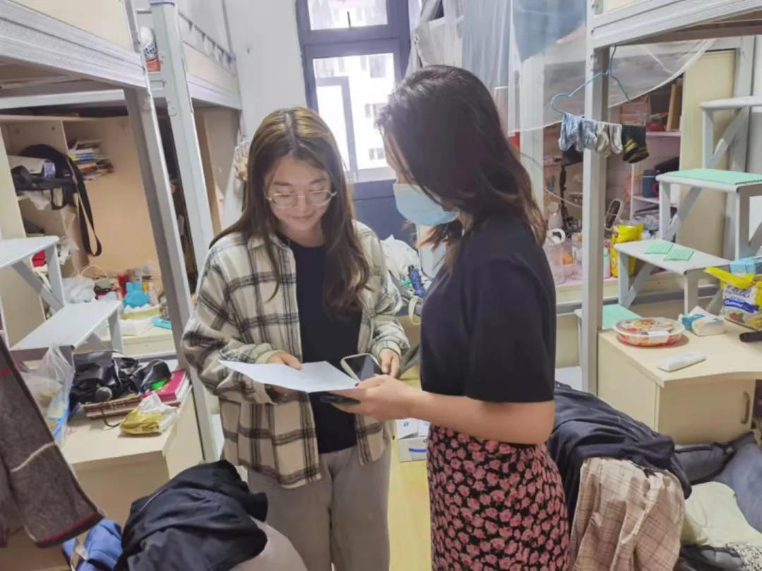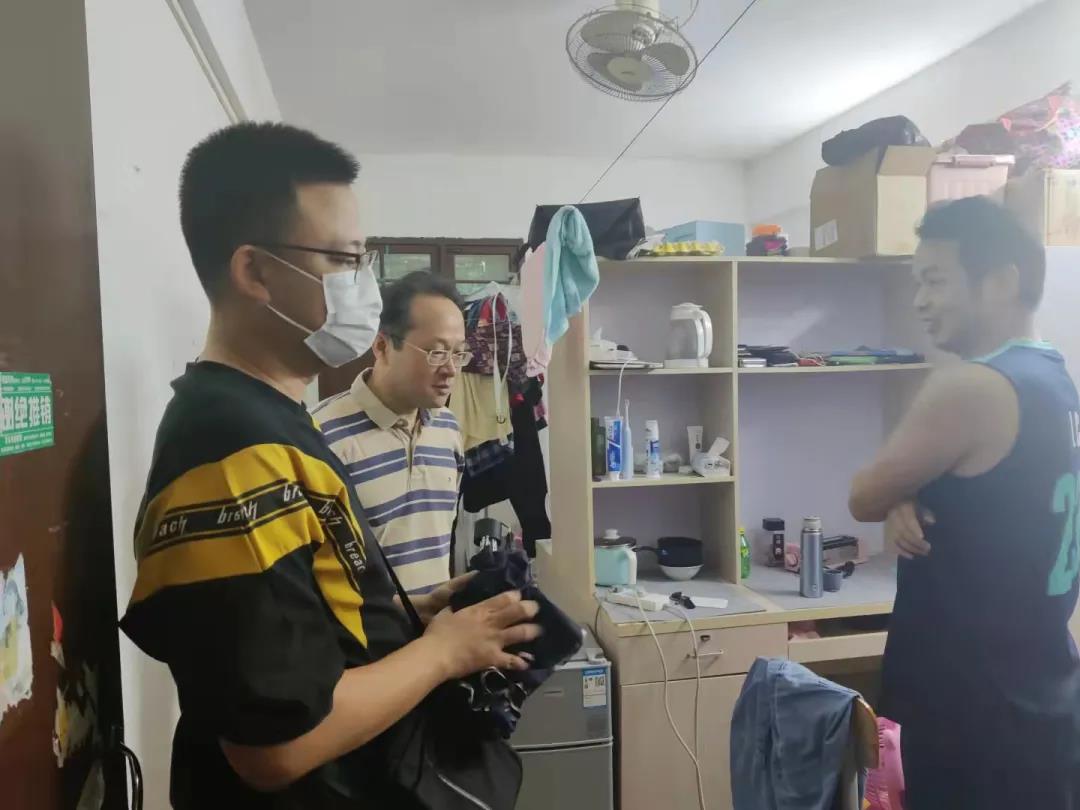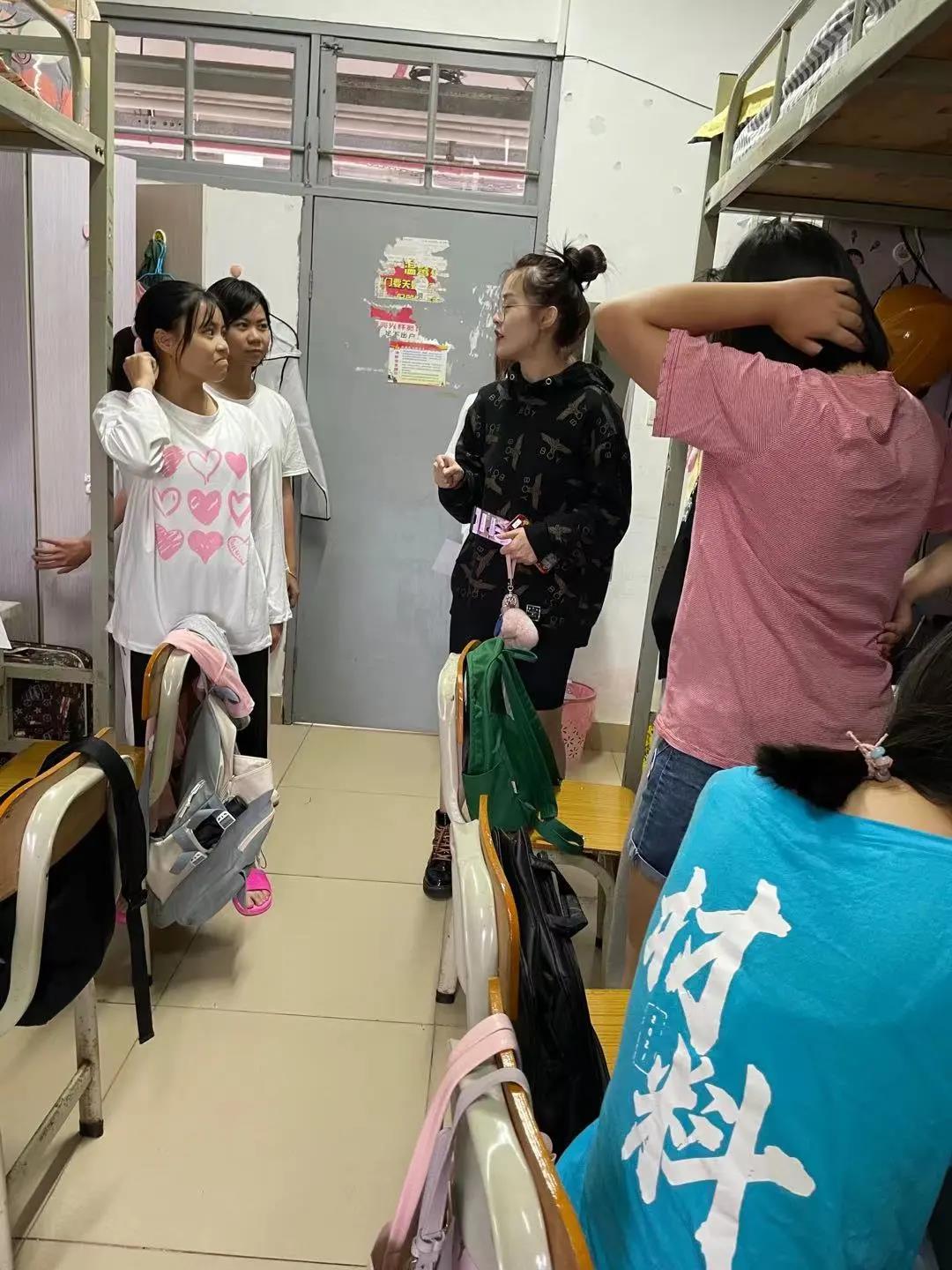 在检查过程中,各位老师走进学生宿舍,亲切慰问宿舍中的同学,就学生目前在日常生活中遇到的困难进行建议和帮扶。强调台风来临之际,切记要保护好自己的个人安全;在宿舍要记得把东西收放好,同时阳台上不要放任何物品,防止被大风吹落;避免外出宿舍,一定要保证自身的安全;面对台风天气大家应该互相帮助,有问题要第一时间找辅导员、班主任。