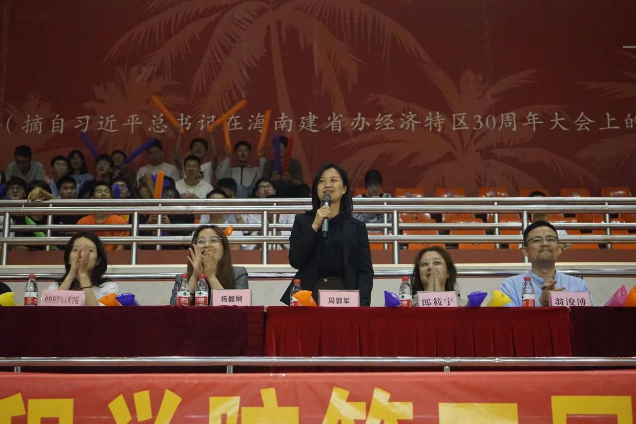 赛前,学院党委副书记周郭军做动员讲话。她肯定了学院整体体育风貌,鼓励全体同学奋勇拼搏,努力进取,团结协作,发扬永不言弃的体育精神,打出高水平、高质量的比赛,展现海纳百川,大道致远的海大人风采。