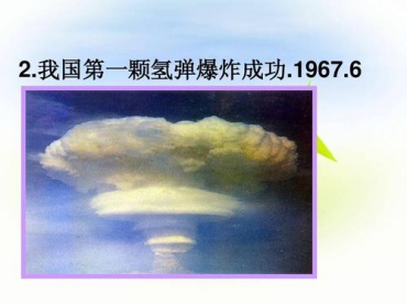 三是1967年6月17日,第一颗全当量机载氢弹空爆试验成功,天空出现“氢太阳”,距离第一颗原子弹爆炸成功2年零8个月,速度之快令全世界震惊。氢弹的原理与结构比原子弹复杂得多,从原子弹发展到氢弹在科学技术上是质的跨越, 美国用了7年零4个月,苏联用了4年,英国用了4年零7个月,法国当时已研制4年多,尚未成功,充分显示了中华民族伟大复兴的创造力。
