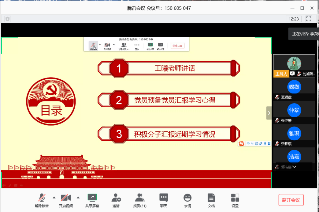 2020年3月27日下午,千度直播 材料系本科党支部开利用腾讯会议平台开展了3月份组织生活会,支部党员共35人,出席28人,另积极分子参会5人。