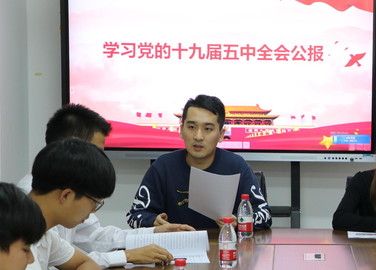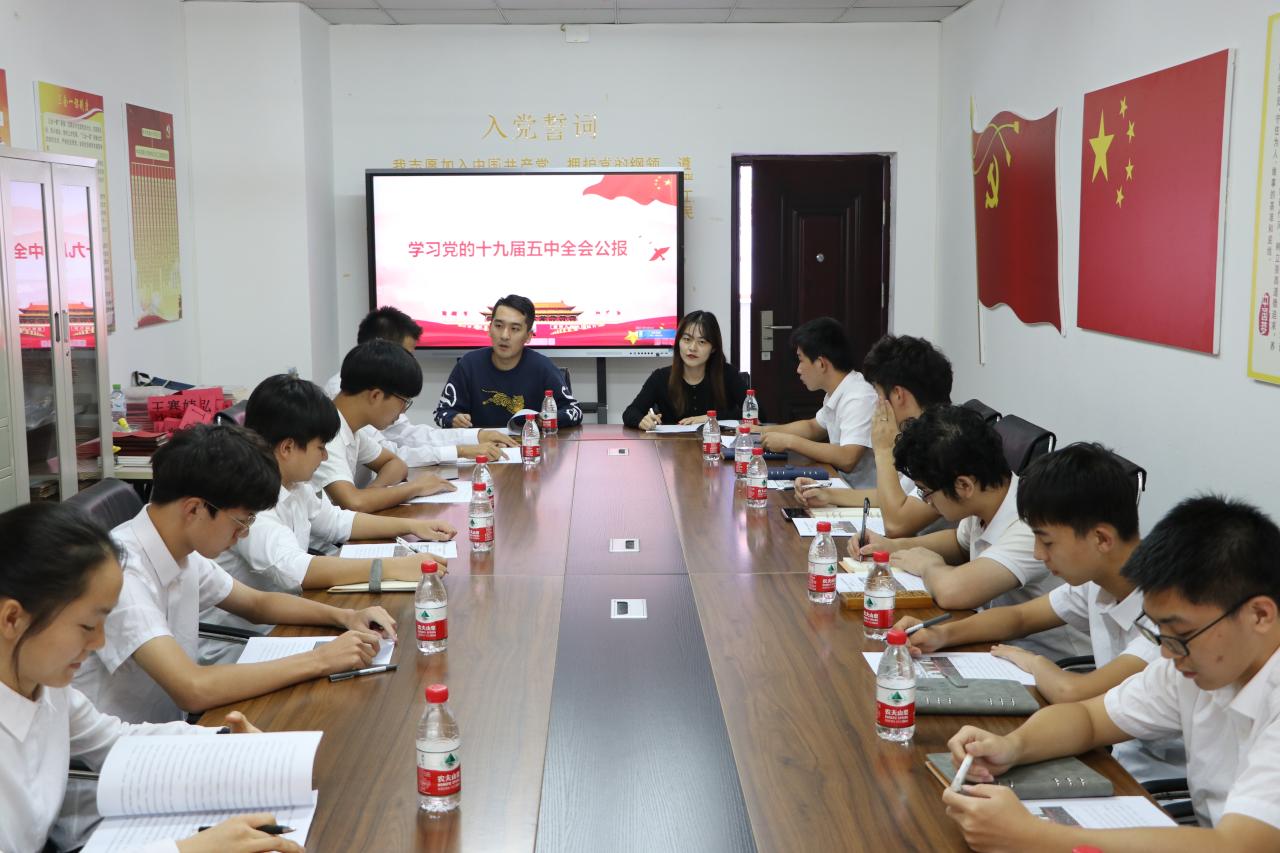 会议伊始,团委书记王曦带领学生组织成员阅读学习十九届五中全会公报。他指出,党的十九届五中全会是在我国将进入新发展阶段、实现中华民族伟大复兴正处在关键时期召开的一次具有全局性、历史性意义的重要会议。他强调,千度直播 师生群体要精准落实全会精神,学生干部要起好带头作用,做好宣传学习工作,按照中央以及教育部有关文件精神,迅速在全院范围内,通过组织开展学生干部内部学习会议,全体学生团支部书记交流会议,以班级为单位的班级学习会议等全面系统地学习传达全会精神,同时在学生党员培训活动中安排专题学习,做到全面系统学、联系实际学,用心学进去、用情讲出来、用力做起来。