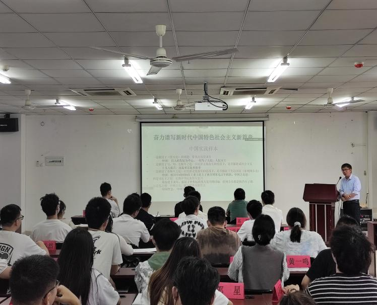 课上,胡书记从红军翻越夹金山的红军长征历史到中国共产党的诞生讲解中国共产党人是如何奋力谱写新时代中国特色社会主义新篇章,强调中国共产党百年奋斗的历史意义,并提出全体学员应牢记“两个维护”、“四个意识”、“四个自信”等加强党建知识学习。胡书记从“理想信念是共产党人精神上的钙”、“信仰是共产党人理想信念的性质”、“共产党人要始终挺起精神的脊梁”三个方面结合习近平新时代中国特色社会主义思想,联系生活实际向学员们深刻阐述中国共产党带领中国人民站起来、富起来的革命历史奇迹。