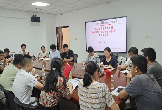 为深入学习贯彻习近平总书记关于党纪学习教育重要讲话和重要指示批示精神,认真学习贯彻《中国共产党纪律处分条例》(以下简称《条例》),2024年4月29日,高分子系教工党支部在研发楼210会议室召开支部学习会,重点学习了《条例》等文件。